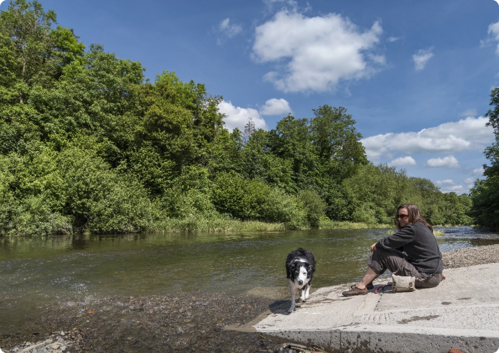 - Dogs must be kept on leads while walking. They may be let off the lead on the river bank if they are under control.